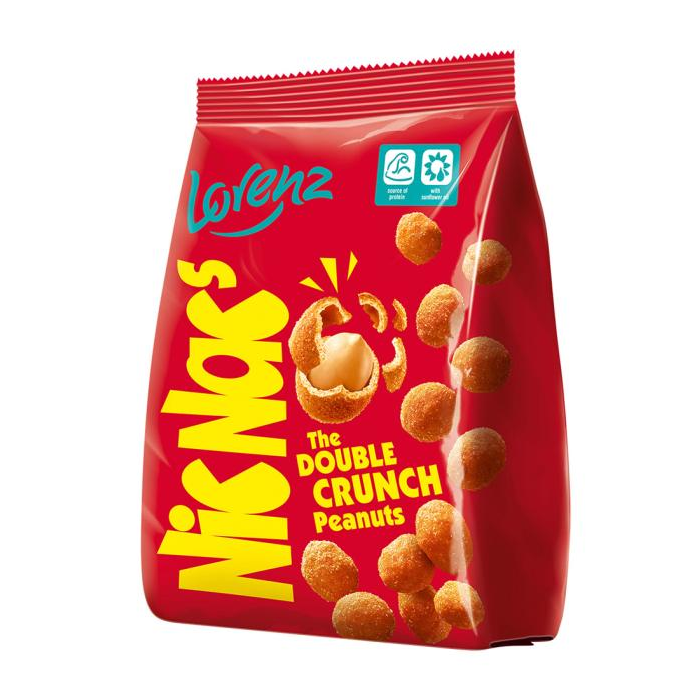 ARAŠIDY lúpané pražené (49%), škrob, rastlinné oleje (slnečnicový, repkový), PŠENIČNÁ múka, cukor, jedlá soľ, modifikovaný škrob, rastlinný tuk (repkový) hydrogenovaný, sušená sladká SRVÁTKA, cibuľový prášok, aróma (obsahuje MLIEČNE výrobky, PŠENICU, RAŽ), dymová aróma, sušený SYR, paprika mletá, koreniny, hydrolyzovaná SÓJOVÁ bielkovina, práškové kvasnice, kypriace látky: difosforečnanym uhličitan sodný. Môže obsahovať ORECHY. Upozornenie: NEVHODNÉ PRE MALÉ DETI, HROZÍ NEBEZPEČENSTVO UDUSENIA.