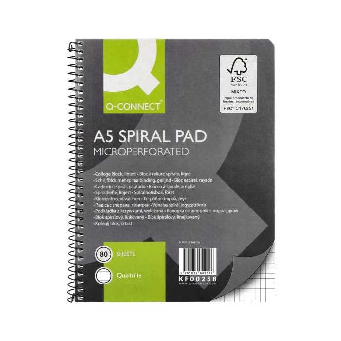 Blok College Q-CONNECT A5, 80 listov, štvorčekový