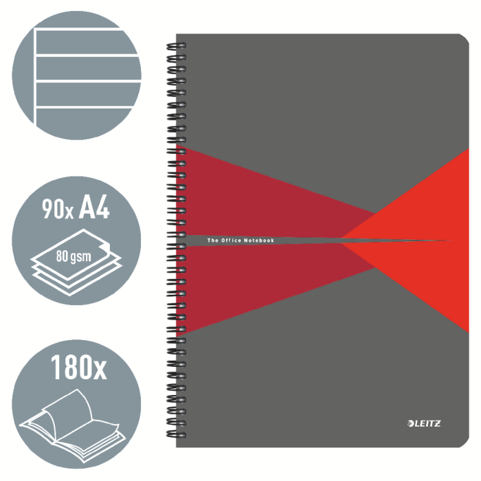 Špičkový zápisník na každodenné používanie. Každý zápisník má 90 listov papiera najvyššej kvality s gramážou 80 g/m2, drôtená väzba umožňuje 360-stupňové otváranie, laminované kartónové dosky.