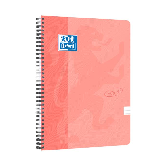 Blok špirálový Oxford Nordic Touch A4+/70 listov linajkový, lososový na dvojitej čiernej špirále, dosky z tvrdého kartónu so soft touch povrchom, kompatibilný so SCRIBZEE, biely, dokonale hladký papier Optik Paper+, neprepíja, cert. EÚ Ecolabel.