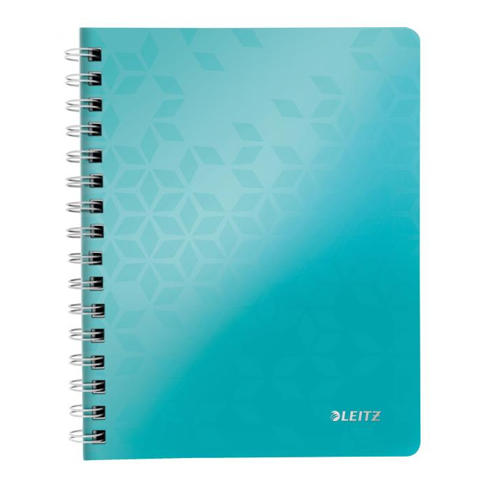 Krúžkový blok z dizajnovej rady Leitz WOW formátu A5 v žiarivých farbách. Vo vnútri biely papier s hmotnosťou 80 g / m2 s FSC® certifikáciou. Stránky sú perforované pre ľahšie odtrhávanie jednotlivých listov. Dvojitá drôtená krúžková väzba uľahčuje pretáčanie listov a zaisťuje dlhú životnosť bloku. Blok s pružnými doskami z polypropylénu obsahuje odnímateľné pravítko a vnútorné vrecko na uloženie voľných papierov, Väčšie balenie 6 ks. Farba ľadovo modrá.