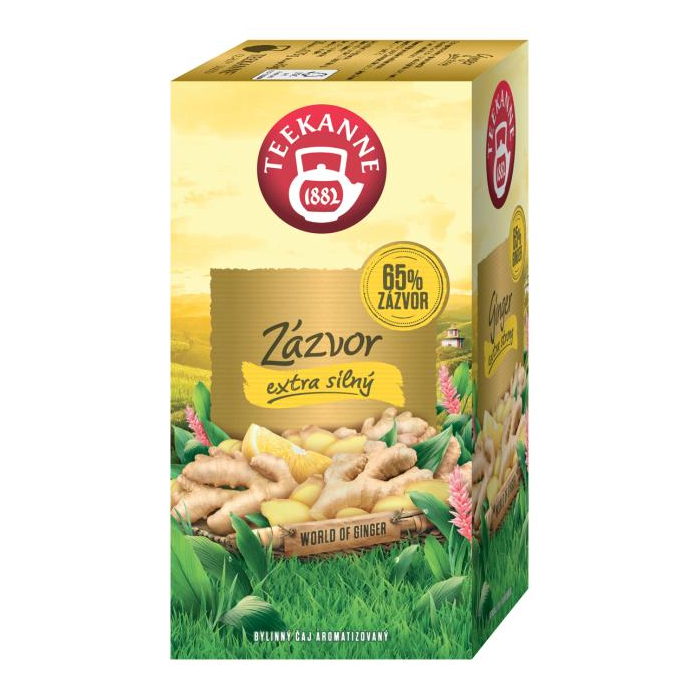 Teekanne Ginger Extra Strong je čajová zmes so 65% zázvorovou príchuťou a so sviežim citrónovým nádychom, má silnú a lahodnú chuť
