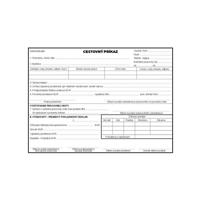 Tlačivo : Cestovný príkaz A5 blok. Balenie100 listov.