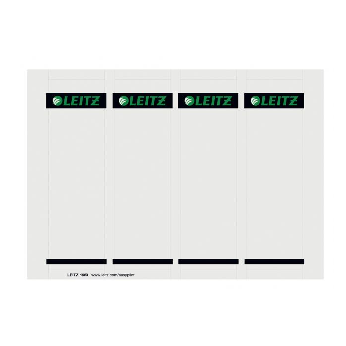Náhradné zasúvacie papierové chrbtové štítky vhodné na potlač do laserových a atramentových tlačiarní a kopíriek cez jednoduchý internetový nástroj `EASYPRINT` na stránke www.esselte.com/easyprint. Kartónové, široké, pre široký zakladač. Štítky sú perforované na liste A4 pre ľahšiu manipuláciu. Pre zakladače Leitz 1010 (šírka hrebeňa 80 mm).