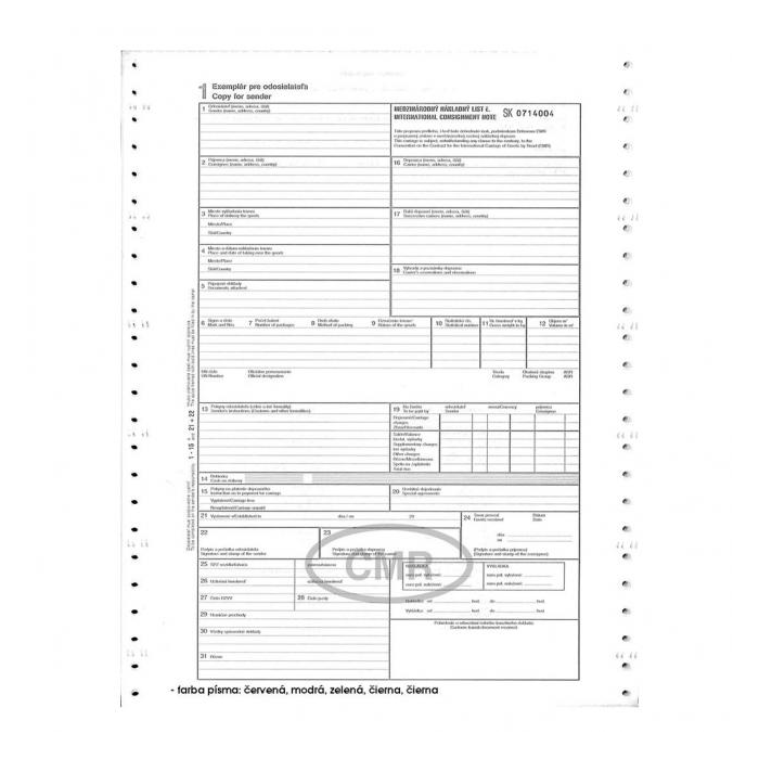 Tlačivo : CMR-5 listov A4 samoprepis na tabelačnom papieri. Balenie 350 ks.