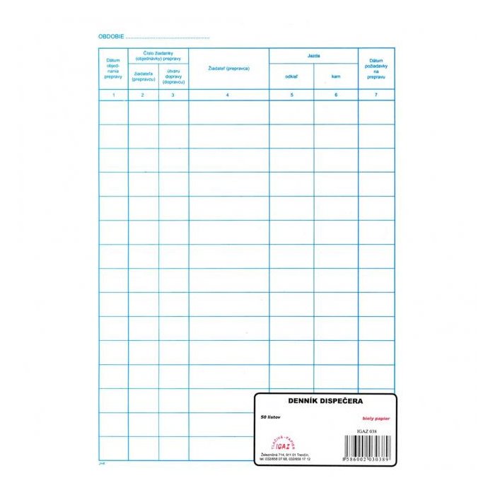Tlačivo : Denník dispečera formát A4, obsahuje 50 listov.