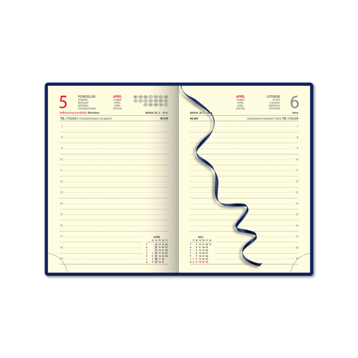 Blok diára obsahuje 12 mesiacov. Rozmery: 142x 204 mm. ROZSAH: 368 strán. MAPOVÁ PRÍLOHA: nie. OBÁLKA: jednostranne penová s razbou. JAZYKOVÉ MUTÁCIE: SK, CZ, UK, DE, RU. BALENIE: 20 ks.