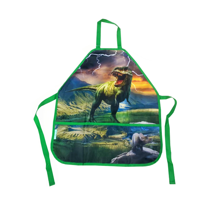 Detská zástera na maliarske a tvorivé potreby, 2 rôzne vzory, veľké predné vrecko s 3 vreckami na maliarske a tvorivé potreby, zapínanie na suchý zips pri krku a zaväzovanie vzadu, vrátane menovky, materiál polyester, univerzálna veľkosť 54x46cm