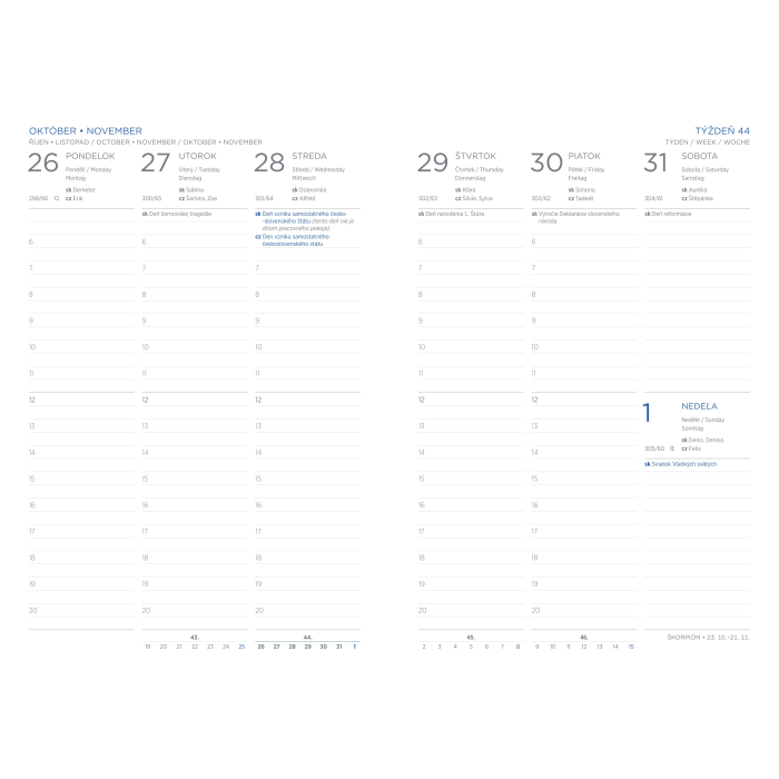 Formát: A5, 148 x 210 mm, týždenný