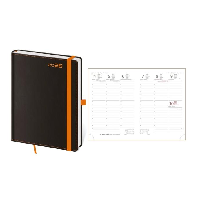 Diár týždenný A5 BORA 16,5 x 12 cm čierno oranžový