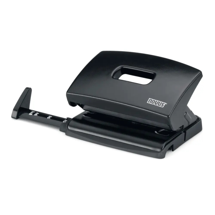 Celokovová kancelárska dierovačka s posuvným pravítkom a plastovým poťahom v dizajne zošívačky Novus C2. Rozpätie dier 8 cm. Hmotnosť 190 g. Záruka 5 rokov. Farba: čierna Kapacita dierovania: 16 listov