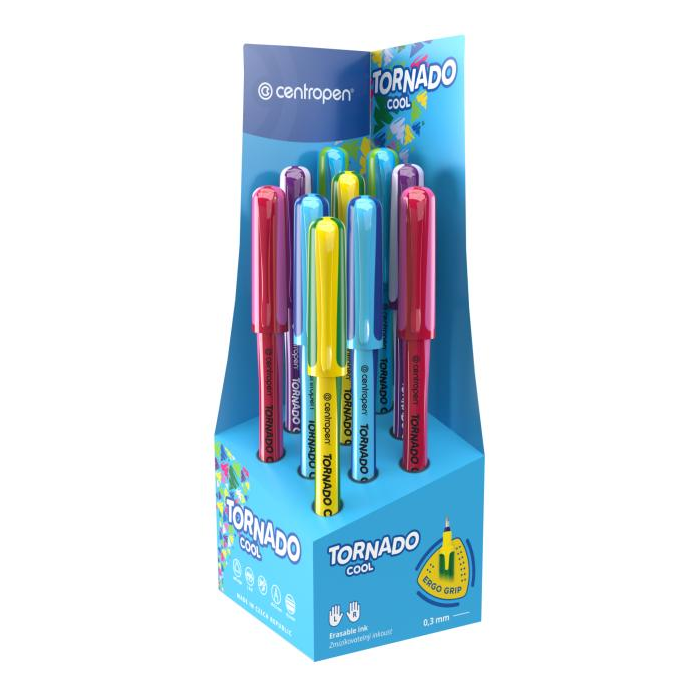 Roller pre školákov s ergonomickým držaním s masážnymi bodmi a modrým zmizíkovateľným atramentom. Pre ľavákov, pravákov i dysgrafikov. Šírka stopy 0,3 mm. Dodávaný v displeji 5 farieb po 2 kusy.