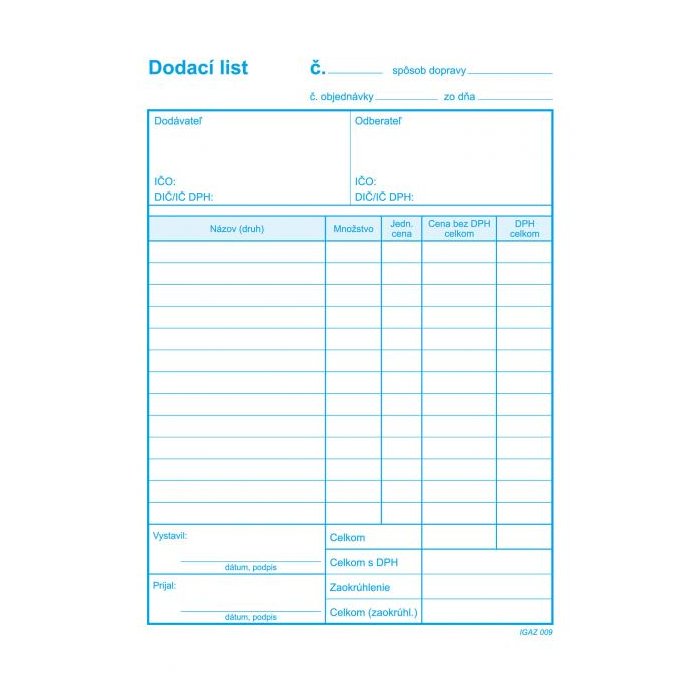 Obchodné tlačivo. Dodací list s DPH, samoprepis, A5, 100 listov.