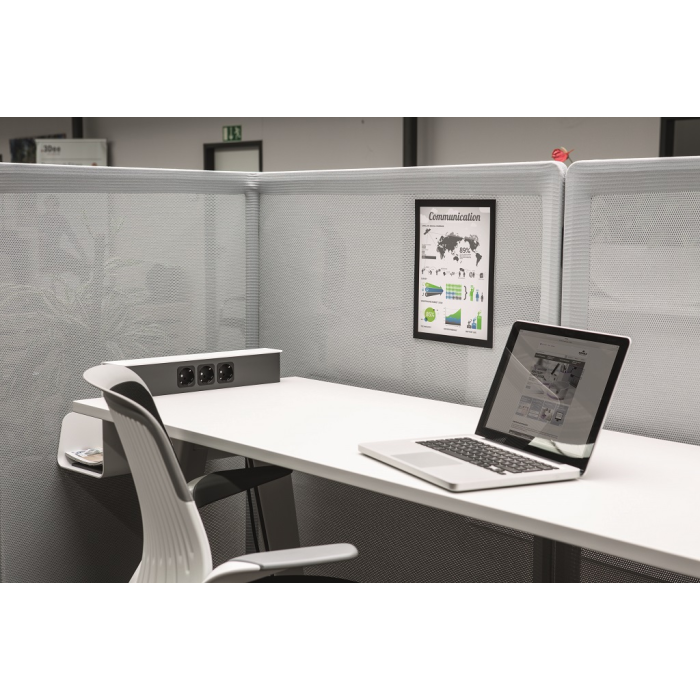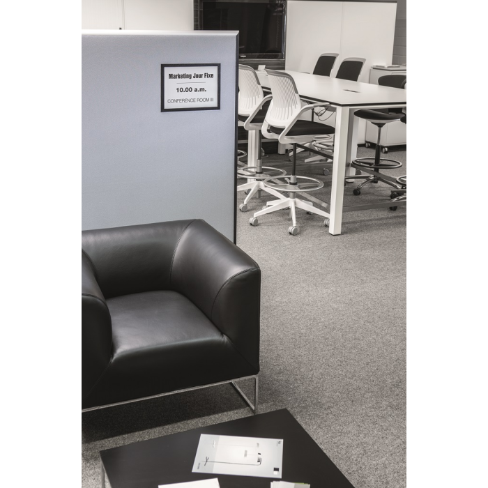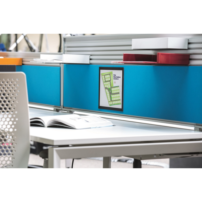 Informačný panel použiteľný iba na textilné povrchy, ako napr. textilné a moderačné tabule. Jednoduché a rýchle vkladanie informácie formátu A4. Na zadnej strane špeciálny priľnavý povrch, ktorý pri premiestňovaní panelu nepoškodzuje textilný povrch tabule. Farba čierna. Balenie 1 ks.