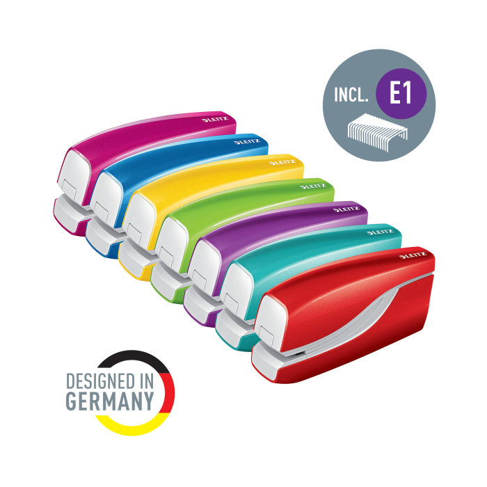 Elektrická zošívačka Leitz New NeXXt WOW. Vďaka jednoduchému ovládaniu jednou rukou je ideálna na časté používanie. Technológia s napájaním na batérie na zošívanie v pohybe. V žiarivých farbách WOW. Batérie (4× 1,5 V AAA LR03) nie sú súčasťou balenia. Kapacita 10 listov. Náhradné spinky ES556800. Farba zelená.
