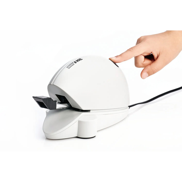 Elektrická zošívačka v modernom dizajne pre použitie v kanceláriach. Zásobník spiniek s plastovým osadením a dvojitým vedením. Kapacita náplne 210 spiniek ozn. NE 6. Hĺbka zošívania 1 cm. Hmotnosť 650 g. Napájanie z elektrickej siete 230 V/ 50 Hz.