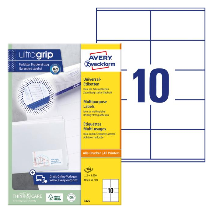 Biele univerzálne etikety vhodné na každodenné použitie v atramentových a laserových tlačiarňach a kopírovacích strojoch. Vďaka inovatívnej technológie ultragrip sa môžete spoľahnúť na bezchybné natiahnutie archu a tlač bez zasekávania. Bezpečnostný okraj QCT zabraňuje zanášaniu tlačiarne lepidlom. Pre laserové tlačiarne testované a certifi kované TÜV SÜD. Vysoká lepivosť na rôznych povrchoch. Ostrá tlač bez bez rozmazávania. Etikety sú vyrobené spôsobom šetrným k životnému prostrediu, majú certifi káciu FSC®, sú bielené bez použitia chlóru. Šablóny a softvér pre jednoduchú a rýchlu tlač etikiet k dispozícii zdarma. U niektorých rozmerov systém QuickPEEL™ na rýchlejšie odlepenie etikiet. Formát A4. Balenie 100 hárkov. Farba biela.