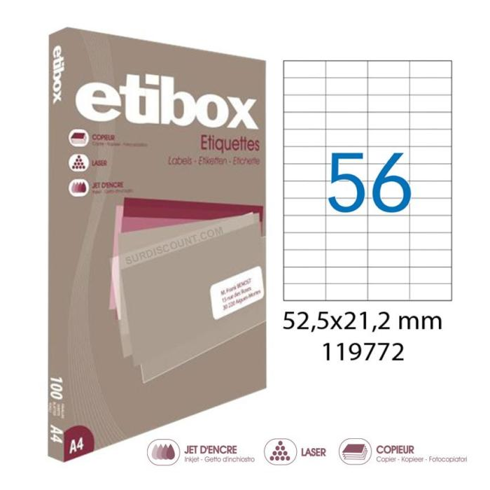Etikety univerzálne 52,5x21,2mm Etibox A4 100 hárkov
