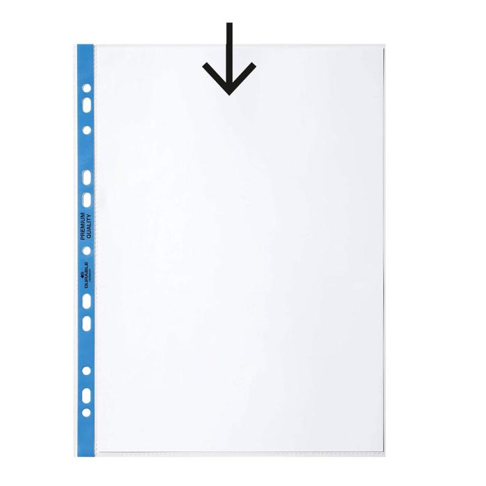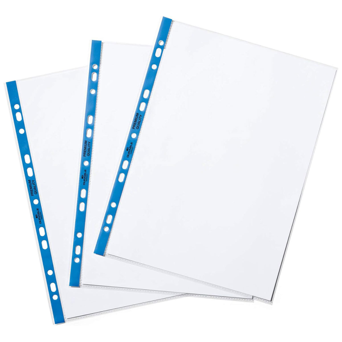 Priehľadné euroobaly z polypropylénu s farebným eurodierovaním. Otvor zhora. Formát A4. Balené v sáčku. Farba okraja modrá. Balenie 100 ks. Hrúbka 90 mic..