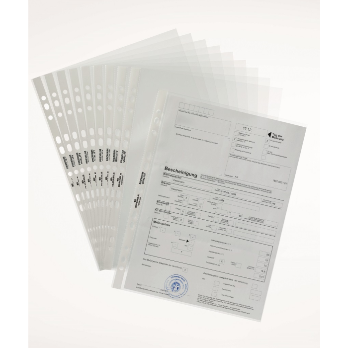 Priehľadný číry euroobal z polypropylénu. Otvor zhora, eurodierovanie, povrch lesklý a hladký. Formát A4. Balenie 100 ks v sáčku.