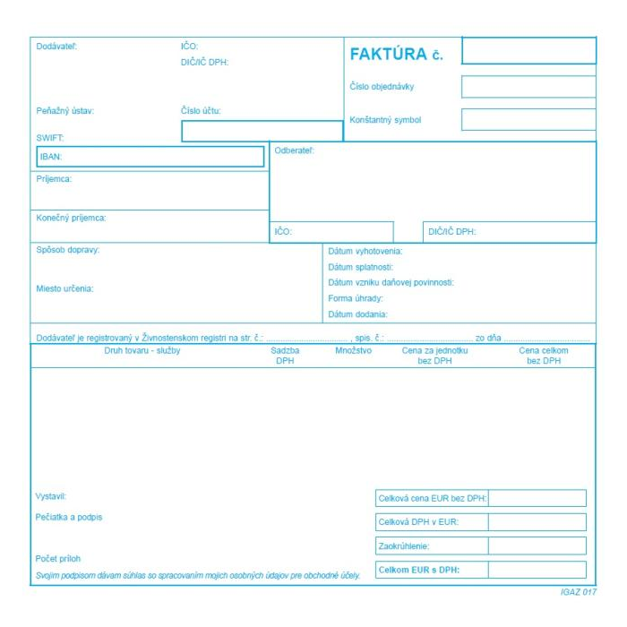 Tlačivo : Faktúra daňový doklad rozmery: 21x20 cm, v balení 100 listov.