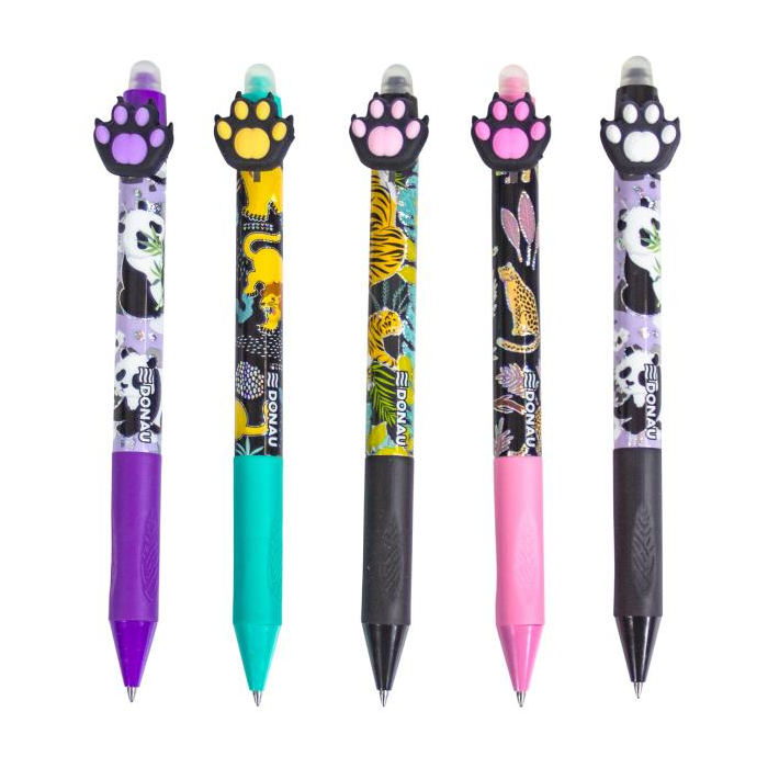 Gélové pero DONAU s odtlačkom labky, 0,7 mm, vymazateľné, displej 50ks