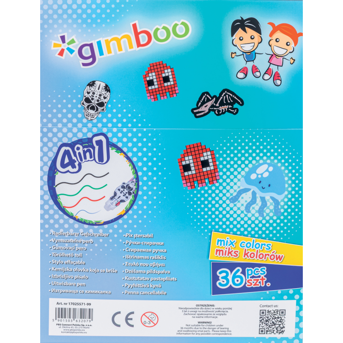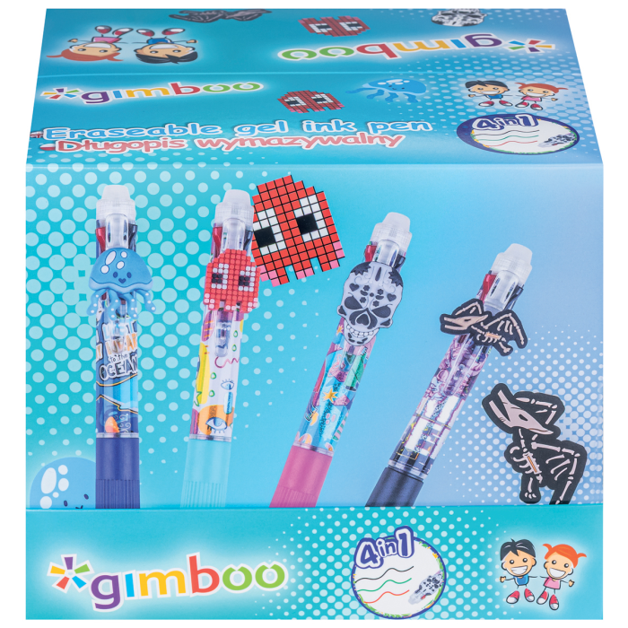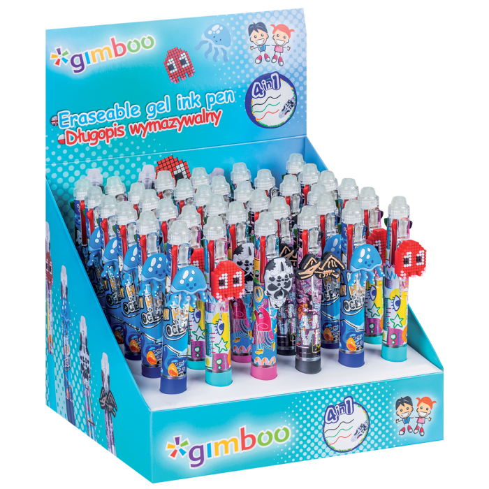 Gélové pero GIMBOO, zmazateľné, 4 V 1, mix motívov, displej 36 ks