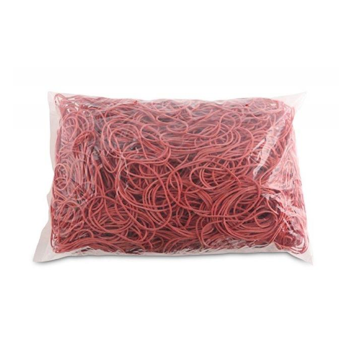 Odolné a pružné gumičky vyrobené z materiálu s prímesou gumy (60 %). Rozmery (hrúbka × šírka) 1,5 × 1,5 mm. Priemer 60 mm. Farba červená.