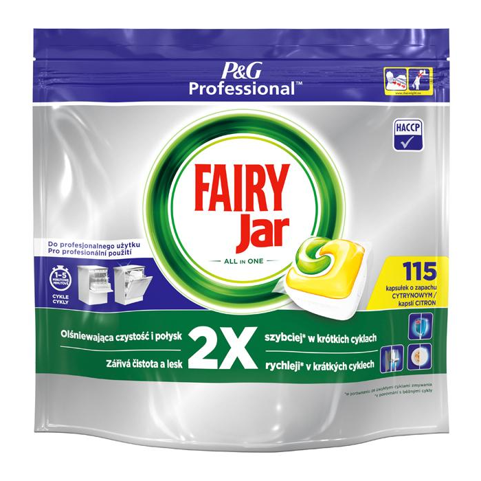 Rýchlo sa rozpúšťa, pôsobí už od začiatku umývacieho cyklu. Všetko v jednom: JAR umýva, uľahčí oplach, obsahuje soľ, dodáva lesk kovom a chráni sklo. Obsah: 115 kapsúl.