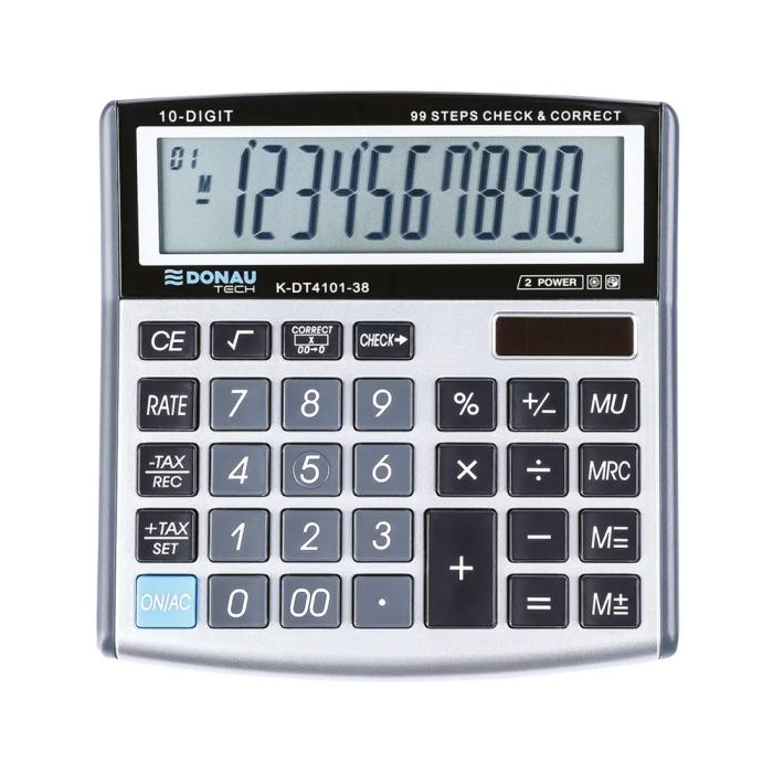 Stolová kalkulačka K-DT4101-38K-DT4121-01 Kalkulačka s 10-miestnym displejom a plastovými tlačidlami. Farba strieborná. Záruka 5 rokov.