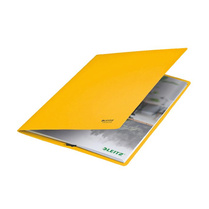 Pútavé a kvalitné kartónové obaly. Jeden z najpoužívanejších typov obalu na ochranu a prenos dokumentov. Gumičky v rohoch zabraňujú vykĺznutiu dokumentov. 100 % recyklovaný kartón, neutrálna uhlíková stopa, kompletne recyklovateľné, s ekologickým certifikátom Blue Angel. Farba žltá.