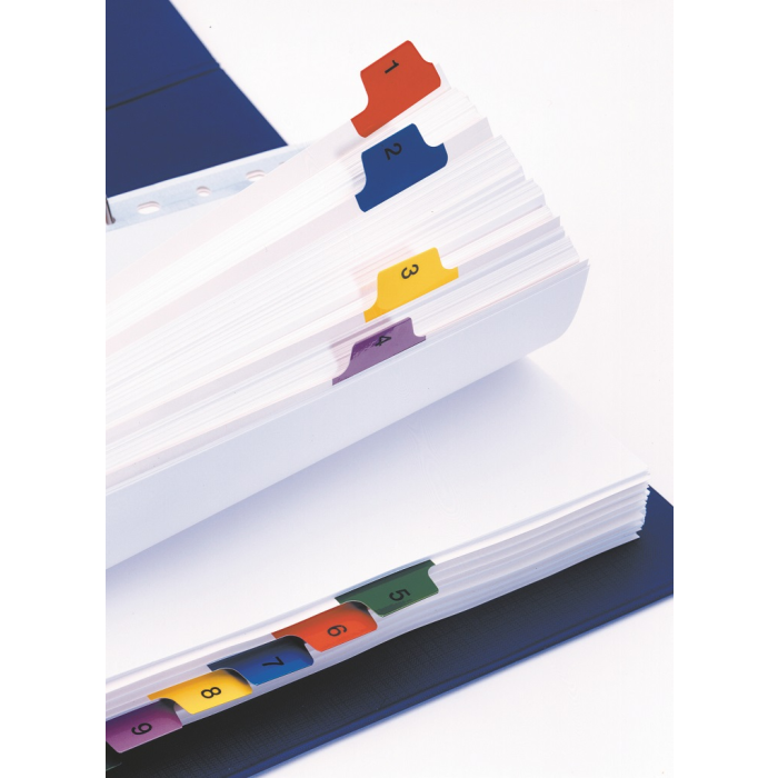 Rozraďovač vyrobený z kvalitného silného kartónu. Formát A4, vystužené eurodierovanie, farebné plastové rozlišovacie okraje, popisovateľný titulný list s farebnou potlačou na jasnú identifikáciu obsahu. Balenie jedna sada v polyesterovom sáčku. Väčšie balenie 10 sád.