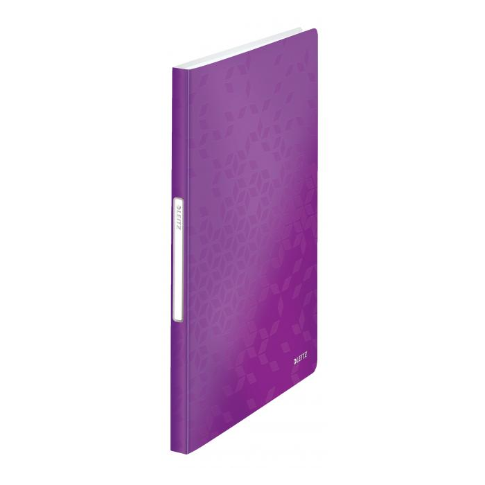 Katalógová kniha na prezentáciu dokumentov formátu A4, do ktorých sa často nahliada. Vyrobená z polypropylénu v dizajne WOW v žiarivých farbách. Vybavená 40 čírymi vreckami hrúbky 45 mic. a samolepiacou chrbtovou etiketou na popis. Väčšie balenie 10 ks. Kapacita 80 listov. Rozmery (š × v × h) 233 × 310 × 16 mm. Farba purpurová.