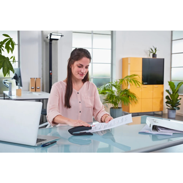 Pištoľ s čiernym plastovým telom a chrómovou úpravou. Záruka 10 rokov. Kapacita náplne 150 spiniek 7/ 45.