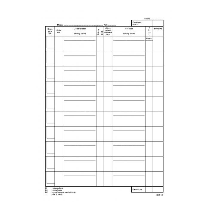 Evidenčné tlačivo. Kniha došlej a odoslanej pošty, A4, tvrdá väzba, 96 listov.