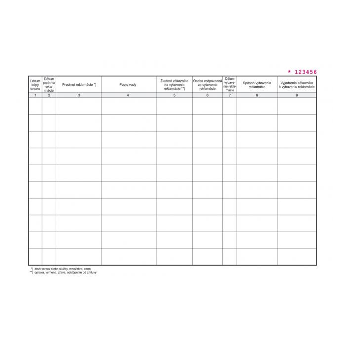 Kniha evidencie reklamácií, A4, 30 listov.