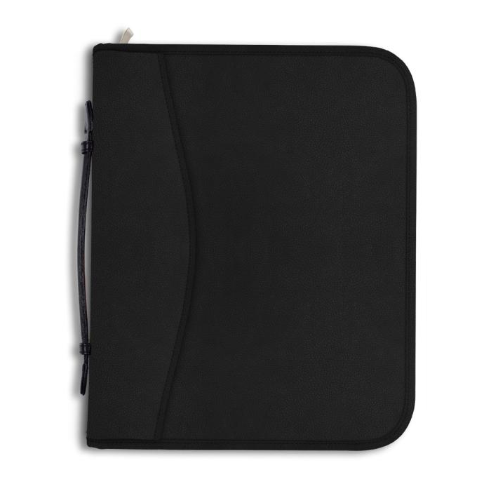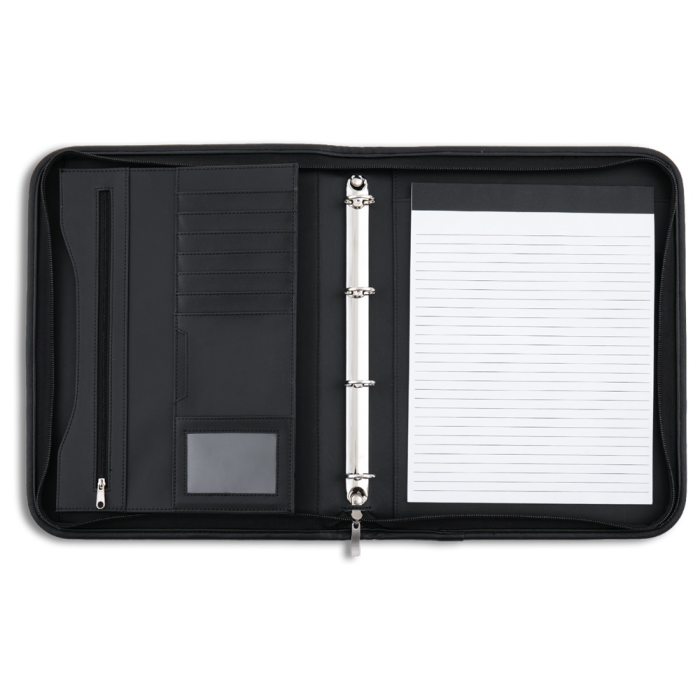 Konferenčná mapa so zipsom a rukoväťou na prenášanie, vybavená 4-krúžkovou mechanikou, vreckami niekoľkých veľkostí. V prevedení imitácie kože, úprava matná. Šírka chrbta 47 mm.