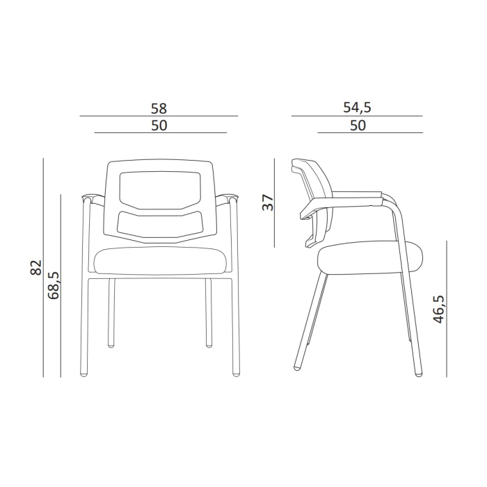 • konferenčná stolička so štvornohou podnožou a podrúčkami