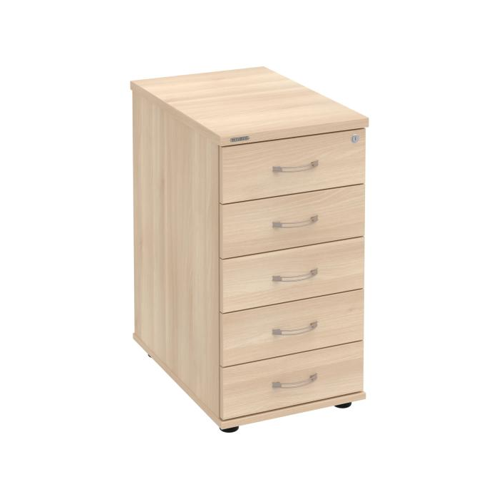 Kontajnery - všetko uložené a vždy poruke. Kontajnery sa väčšinou umiestňujú pod stoly. Mobilné modely sú vybavené kolieskami, je možné ich premiestniť podľa potreby. Základným materiálom korpusov je kvalitná laminovaná drevotriesková doska hrúbky 18 mm. Pre dlhšiu životnosť je na horný diel korpusu použitá doska, ktorej hrúbka je 25 mm. Korpusy a čelá zásuviek sú chránené proti poškodeniu hranou ABS 2 mm. Kontajnery sú vybavené zámkom s centrálnym zamykaním. Vďaka integrovanému systému STOP-CONTROL s centrálnym zámkom u väčšiny kontajnerov sa nemusíte báť prevrhnutiu kontajnera alebo prípadného privretia ruky. Systém zaručí, že pri otvorení jednej zásuvky sa ostatné zásuvky automaticky zablokujú. Zásuvky sú z plastu, ktorý je ľahko umývateľný a vhodný pre jednoduchú údržbu. Praktickou súčasťou vrchnej zásuvky je prehľadný organizér a priestorové deliace priečky. Vaše ceruzky, sponky a ďalšie kancelárske potreby budú vždy na poriadku. Organizér a deliace priečky sú súčasťou každého kontajnera. Na kontajnery Hobis sa vzťahuje päťročná záruka.