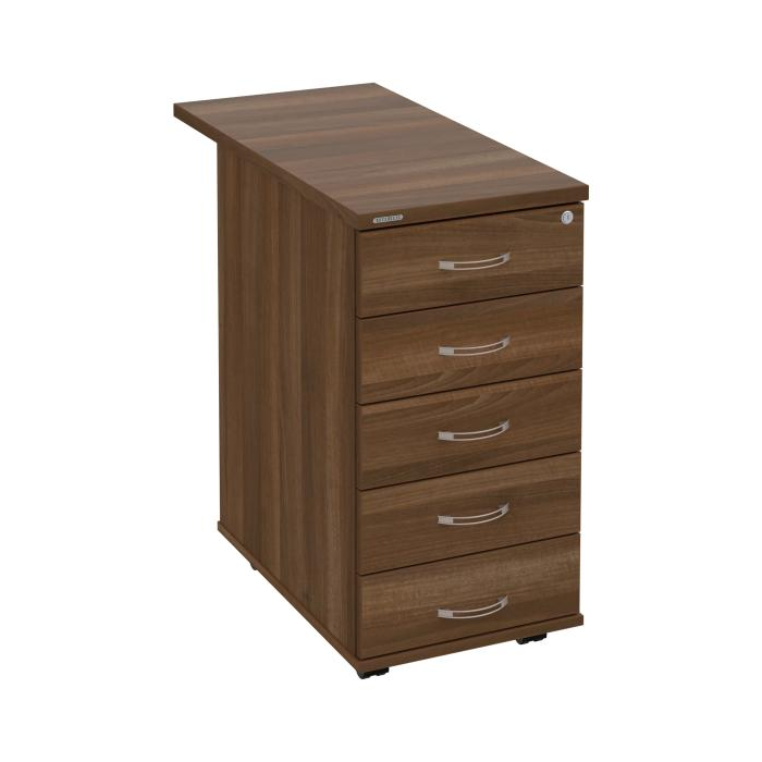 Kontajnery - všetko uložené a vždy poruke. Základným materiálom korpusov je kvalitná laminovaná drevotriesková doska hrúbky 18 mm. Aby sme zaistili dlhú životnosť, použili sme pre horný diel korpusu dosku, ktorej hrúbka je 25 mm. Kvalitnou ochranou proti poškodeniu je tiež 2mm ABS hrana na hornom i spodnom diele korpusu. Vďaka integrovanému systému STOP-CONTROL s centrálnym zámkom u väčšiny kontajnerov (netýka sa ekonomického modulu radu 100.603xy a 100.604xy) sa nemusíte báť prevrhnutiu kontajnera alebo prípadného priškripnutia rúk. Systém zaručí, že pri otvorení jednej zásuvky sa ostatné zásuvky automaticky zablokujú. Zásuvky sú z plastu, ktorý je ľahko umývateľný a vhodný pre jednoduchú údržbu. Čelá zásuviek sú z kvalitnej drevotrieskovej dosky s hrúbkou 18 mm a sú tiež vybavené odolnou 2mm ABS hranou, ktorá garantuje dostatočnú ochranu proti mechanickému poškodeniu. Praktickou súčasťou vrchnej zásuvky je prehľadný organizér a priestorové deliace priečky. Vaše ceruzky, sponky a ďalšie kancelárske potreby budú vždy na poriadku. Organizér a deliace priečky sú súčasťou každého kontajnera. Na kontajnery Hobis sa vzťahuje päťročná záruka.