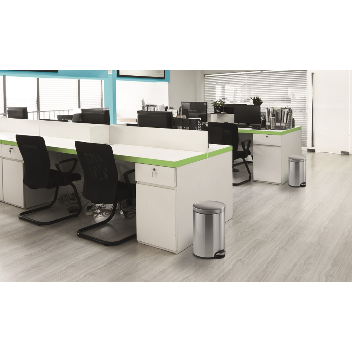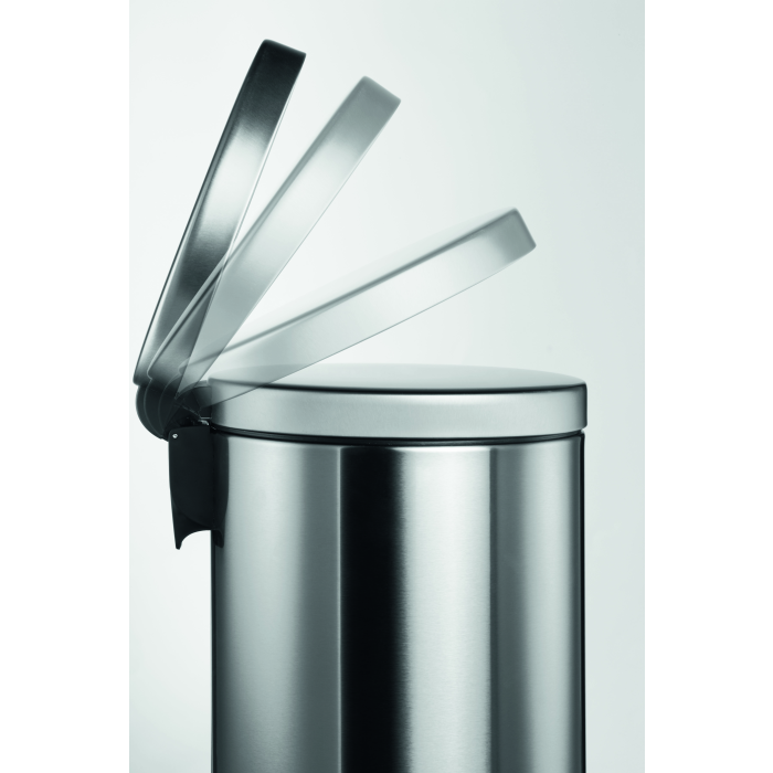 na vrecko na odpadky. Spodná časť z plastu proti korózii a pre lepšiu stabilitu. Veko na pedál sa zatvára ticho. Úprava z nerezovej ocele je potiahnutá vrstvou proti neželaným odtlačkom prstov. Objem 12 l, rozmery 310 x 400 mm.