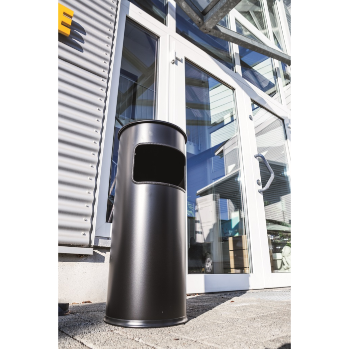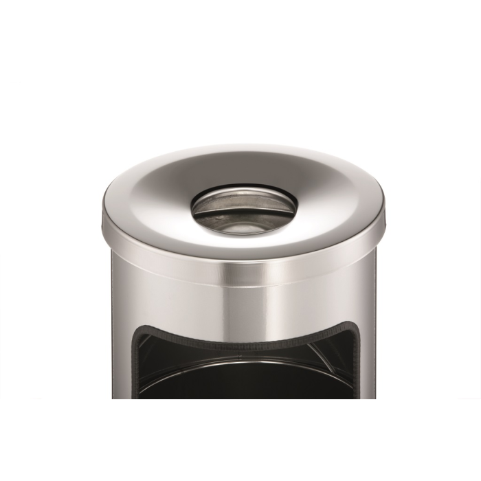 Kovový kôš na odpadky a popolník v jednom. Vhodný na použitie do interiéru aj exteriéru. Bezpečnostné samohasiace hliníkové veko. Objem koša 17 l, výška 630 mm, priemer 250 mm. Objem popolníka 2 l, výška 60 mm, priemer 240 mm. Farba čierna.