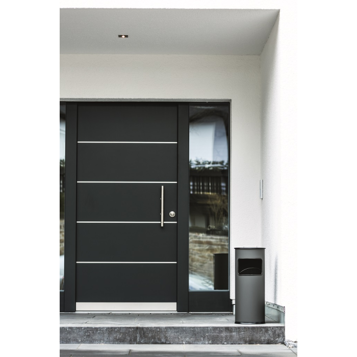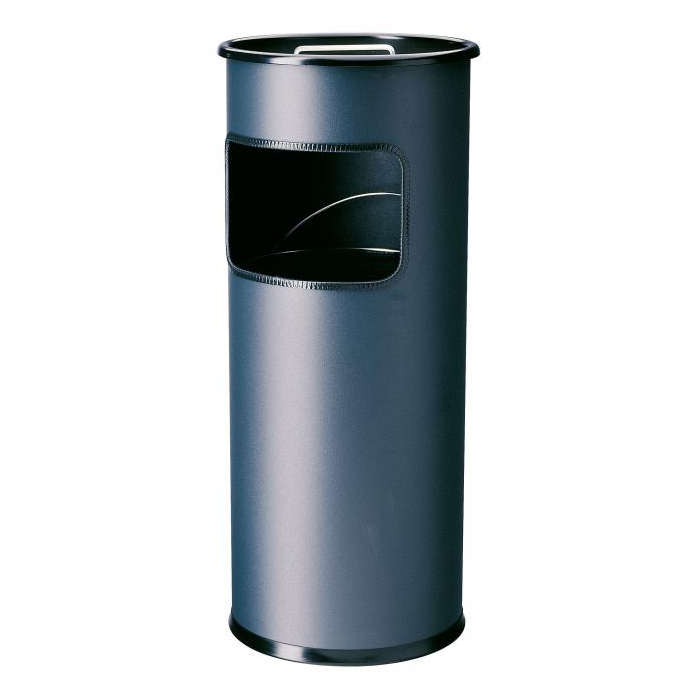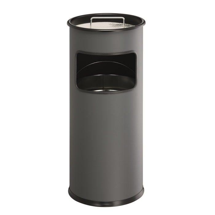 Kovový kôš na odpadky s vyberateľným zinkovým vnútrom a vyberateľným popolníkom naplneným pieskom /1,5 kg/ . Vhodný na použitie v interiéry aj v exteriéry. Objem koša 17 l, výška 620 mm, priemer 260 mm. Objem popolníka 2 l. Farba antracitová.