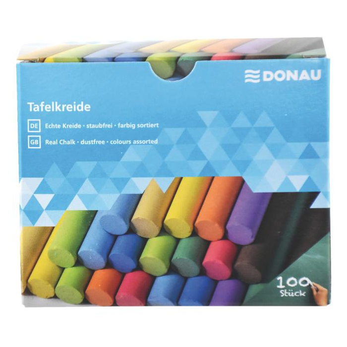 Krieda farebná DONAU 100ks. Kriedy na školské tabule, oválne, 100 ks v balení, farebné.