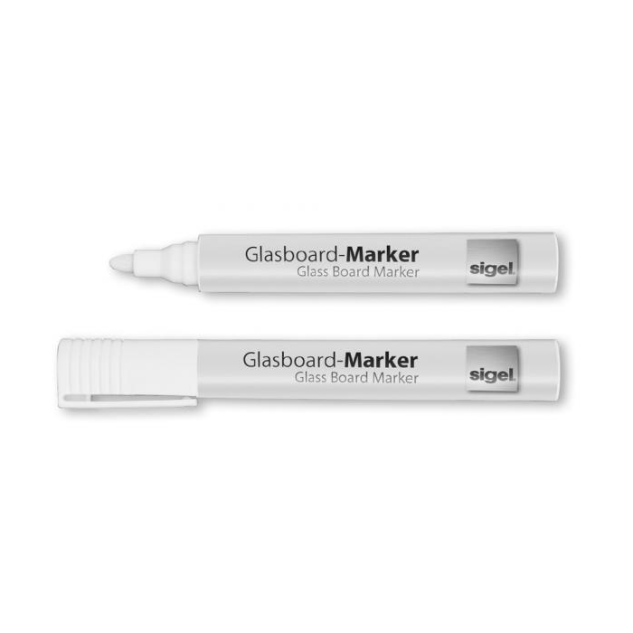 Nepermanentný popisovač vhodný na  sklenené tabule, zrkadlá a okná. Guľatý hrot hrúbky 2 - 3 mm. Atrament na báze kriedového pigmentu je zmazateľný vlhkou alebo suchou utierkou. Balenie 2 kusy.