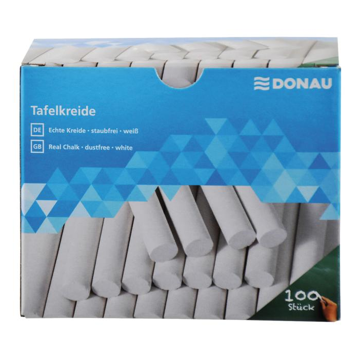 Krieda biela DONAU 100ks. Kriedy na školské tabule, oválne, 100 ks v balení, biele.