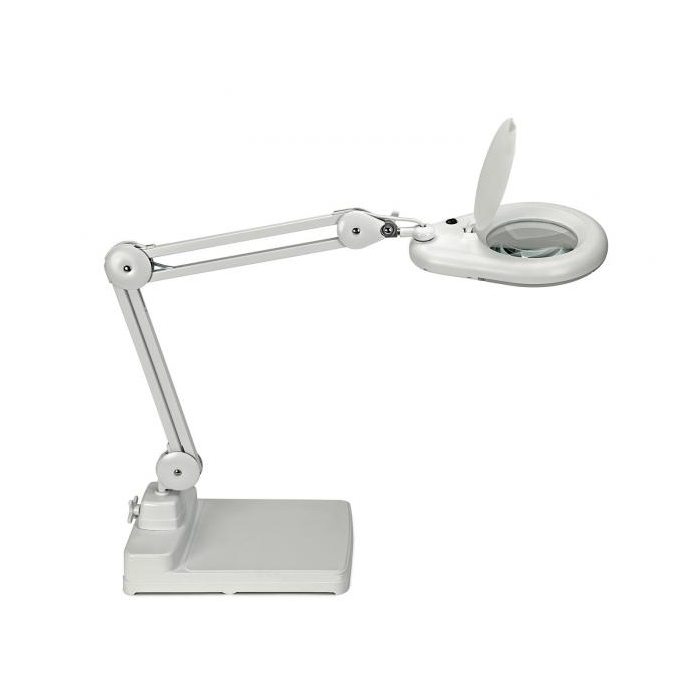 Silné a stabilné lampy a lupy v jednom v energeticky úspornej triede „A+“ (spektrá A++ - E) s najmodernejšou LED technológiou, elegantne navrhnutou hlavicou s dlhou životnosťou LED žiaroviek so svietivosťou denného bieleho svetla 6 500 °K a spotrebou energie 8 kWh / 1 000 h. Kruhové umiestnenie vstavaných 56 ks LED žiaroviek bez možnosti ich výmeny umožňuje rovnomerné rozdelenie svetla. Životnosť LED je cca 20 000 hodín. Svietivosť 2 120 lx pri vzdialenosti 35 cm od stola, svetelný tok 660 lúmenov, garancia bez spotreby energie pri vypnutí. Šošovka s ochrannou chlopňou proti prachu a slnečnému žiareniu, 3 dioptrie so 75% zväčšením, zväčšovací priestor 144 cm². Silné kovové ramená sú výkyvné