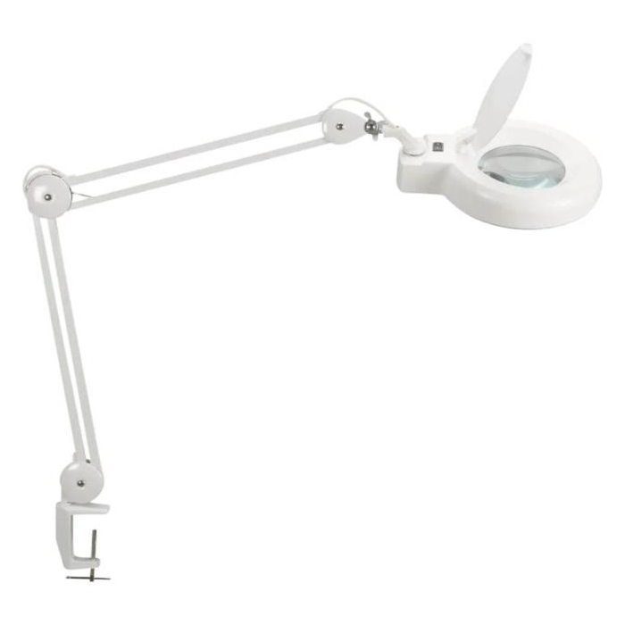 Silné a stabilné lampy a lupy v jednom v energeticky úspornej triede „A+“ (spektrá A++ - E) s najmodernejšou LED technológiou, elegantne navrhnutou hlavicou s dlhou životnosťou LED žiaroviek so svietivosťou denného bieleho svetla 6 500 °K a spotrebou energie 8 kWh / 1 000 h. Kruhové umiestnenie vstavaných 56 ks LED žiaroviek bez možnosti ich výmeny umožňuje rovnomerné rozdelenie svetla. Životnosť LED je cca 20 000 hodín. Svietivosť 2 120 lx pri vzdialenosti 35 cm od stola, svetelný tok 660 lúmenov, garancia bez spotreby energie pri vypnutí. Šošovka s ochrannou chlopňou proti prachu a slnečnému žiareniu, 3 dioptrie so 75% zväčšením, zväčšovací priestor 144 cm². Silné kovové ramená sú výkyvné