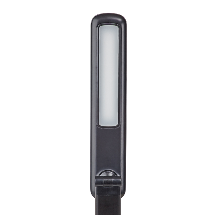 Lampa s integrovaným USB typu A na nabíjanie smartfónu a 5-stupňovým stmievačom s dotykovou funkciou na základni svietidla. Energeticky úsporná trieda „A“ (spektrá A++ - E) s 24 LED žiarovkami bez možnosti ich výmeny so životnosťou 20 000 hodín s teplým bielym svetlom 3 000 °K. Svietivosť 2 060 lx pri vzdialenosti 35 cm od stola, svetelný tok 410 lúmenov, extrémne nízka spotreba energie cca 8 kWh / 1 000 h. Sklopná a otočná svetelná hlavica 26 × 5 cm, stabilný podstavec 18 × 13 cm so závažím a podložkou proti poškodeniu dosky stola. Rameno z eloxovaného hliníka, dĺžka 36,5 cm, výška normálnej pracovnej pozície 41 cm, dĺžka kábla 1,8 m. Farba čierna.