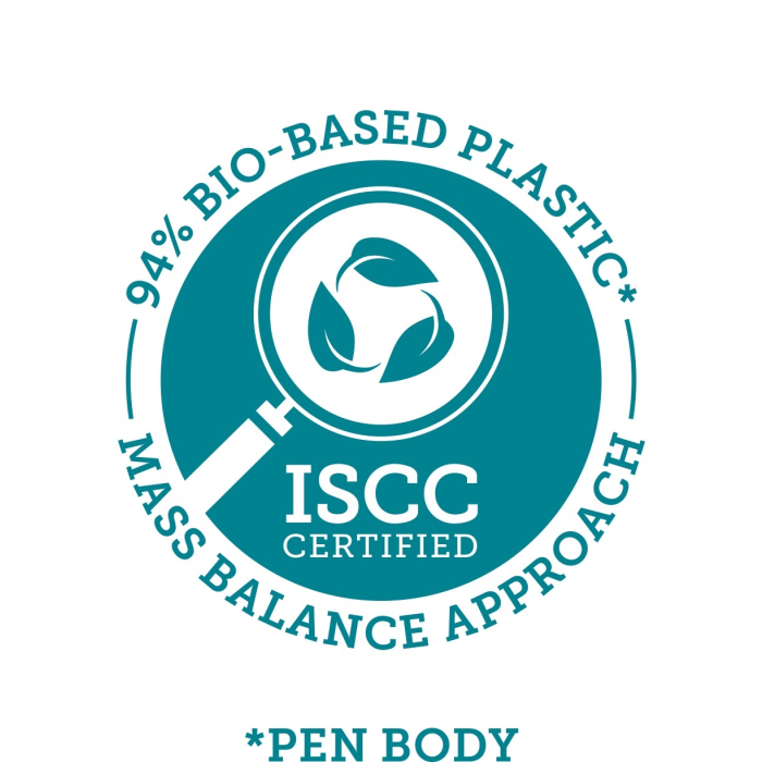 Liner má certifikáciu ISCC Plus: Na výrobu tela pera sa získalo 94 % plastu na bio báze (hmotnostná bilancia).